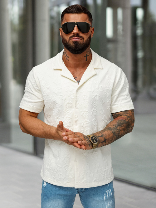 Мъжка риза с къс ръкав екрю OZONEE O/B2256