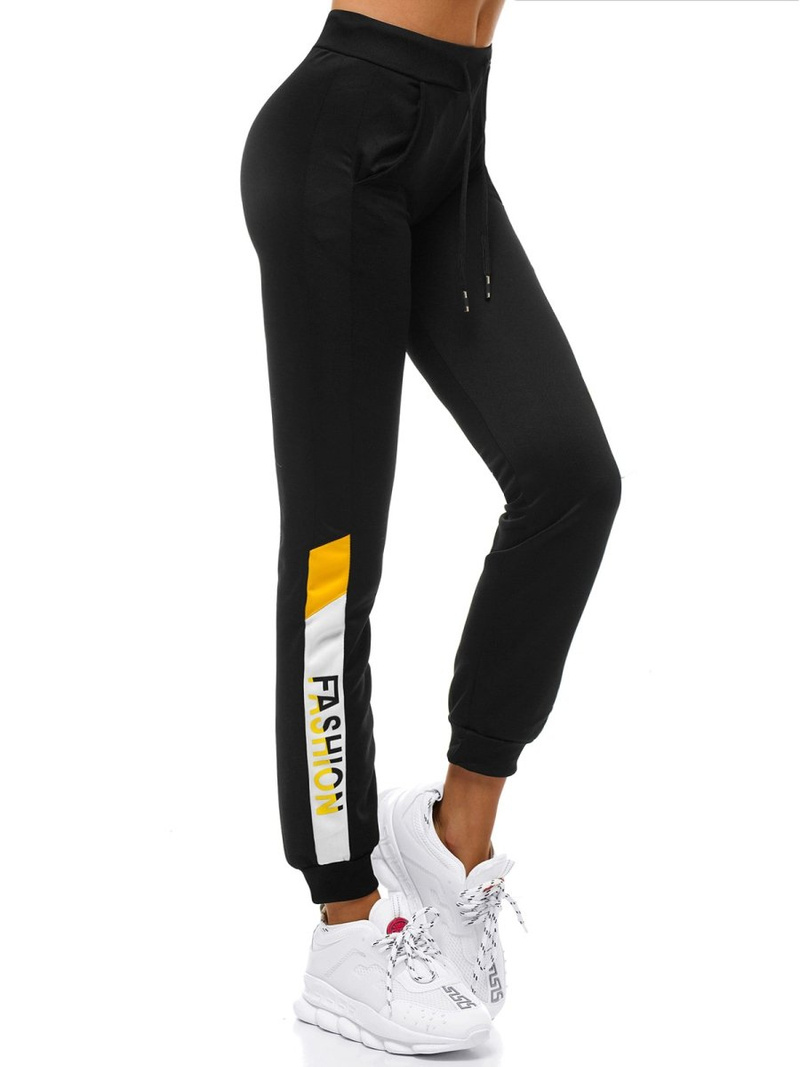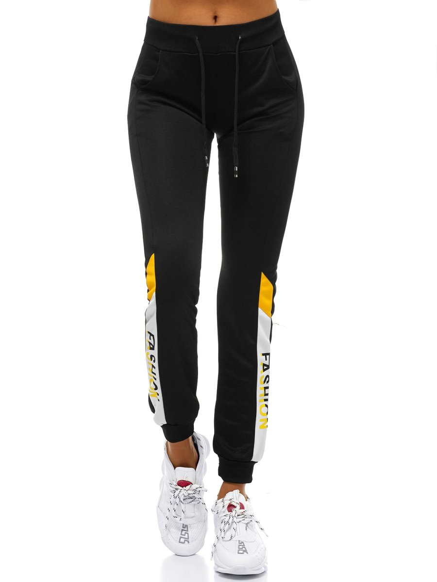 Дамски долнища на анцуг ччерно-жълто OZONEE O/82286