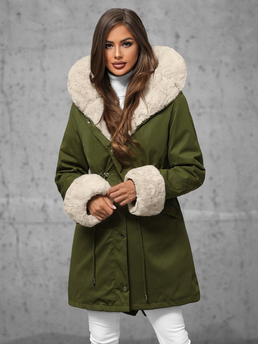 Дамско зимно дълго яке с косъм зелено OZONEE JS/5M3187/136