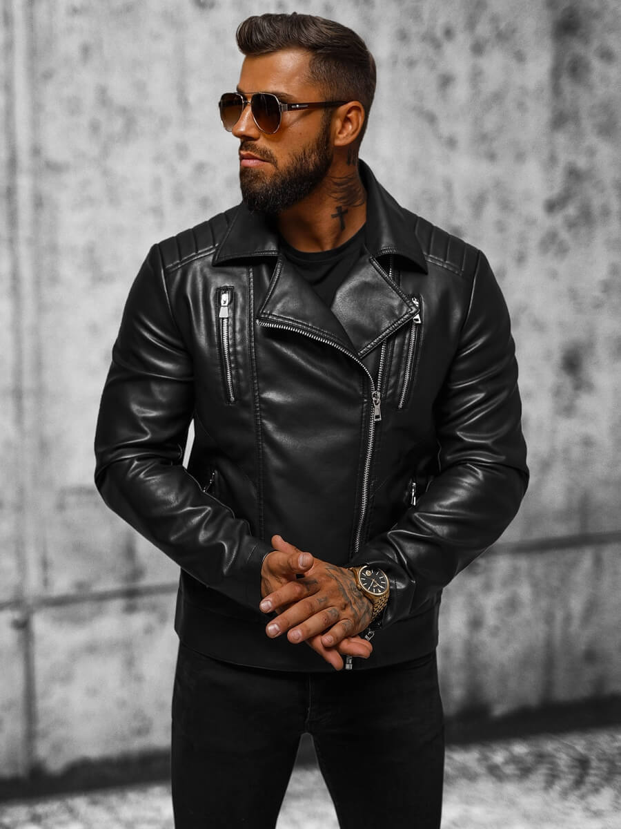 Мъжко кожено яке ramoneska black OZONEE JS/11Z8056