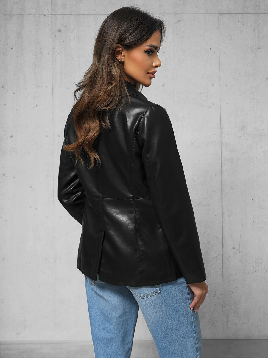 Дамско кожено яке черно OZONEE JS/11Z8121 - елегантността среща комфорта