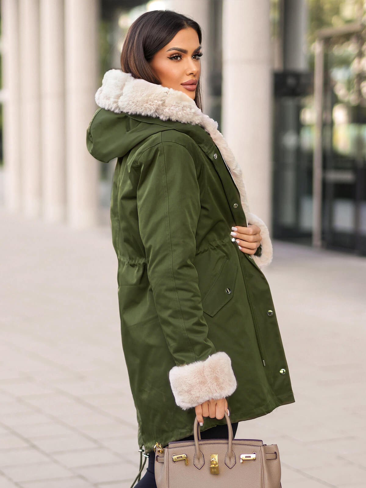 Стил и удобство в едно - Зимно яке за жени с кожа в зелено OZONEE JS/M763/136Z