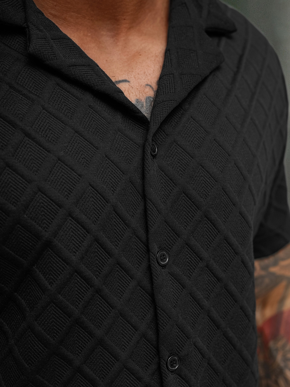 Мъжка риза с къс ръкав черен OZONEE O/B2257