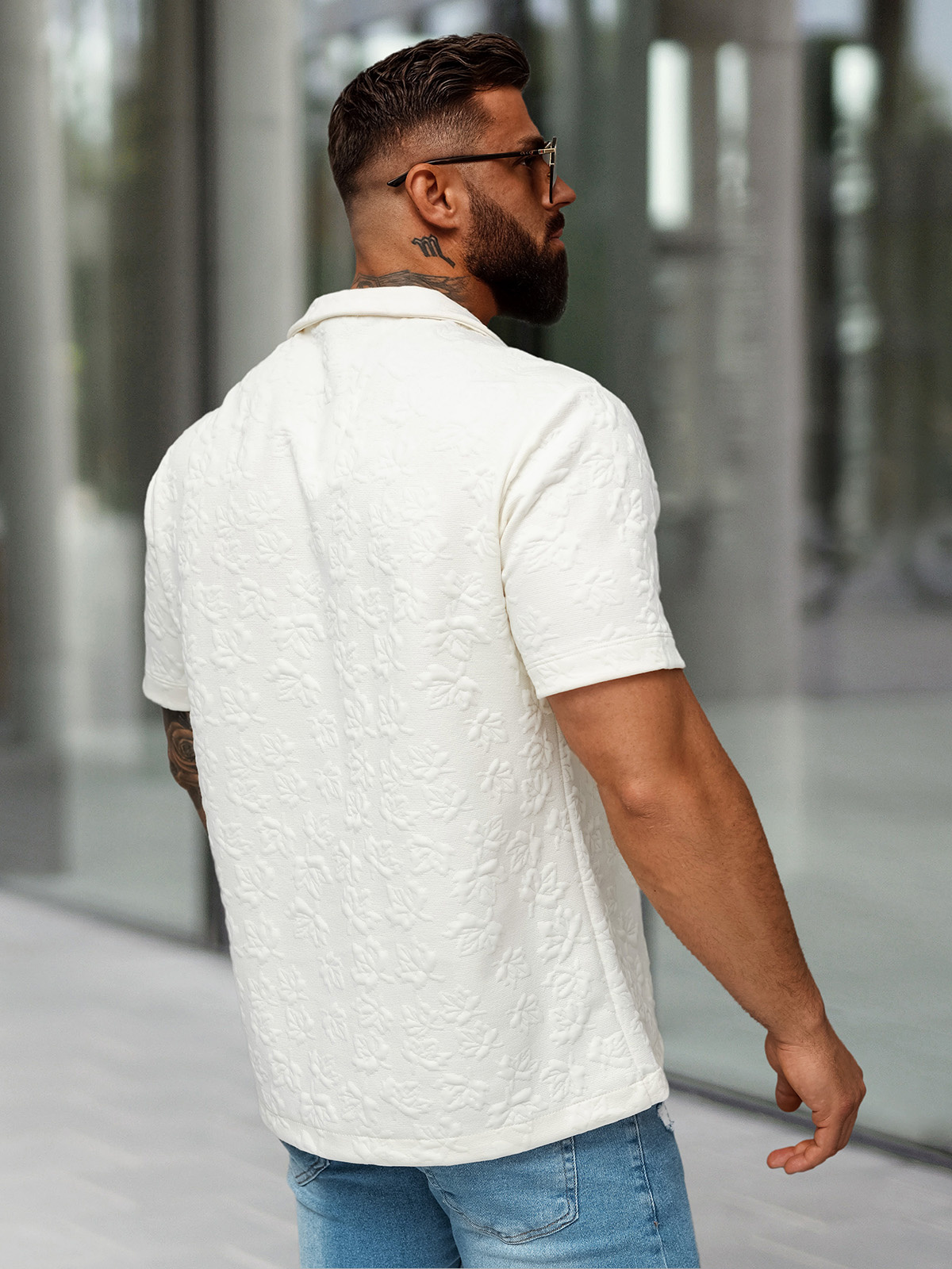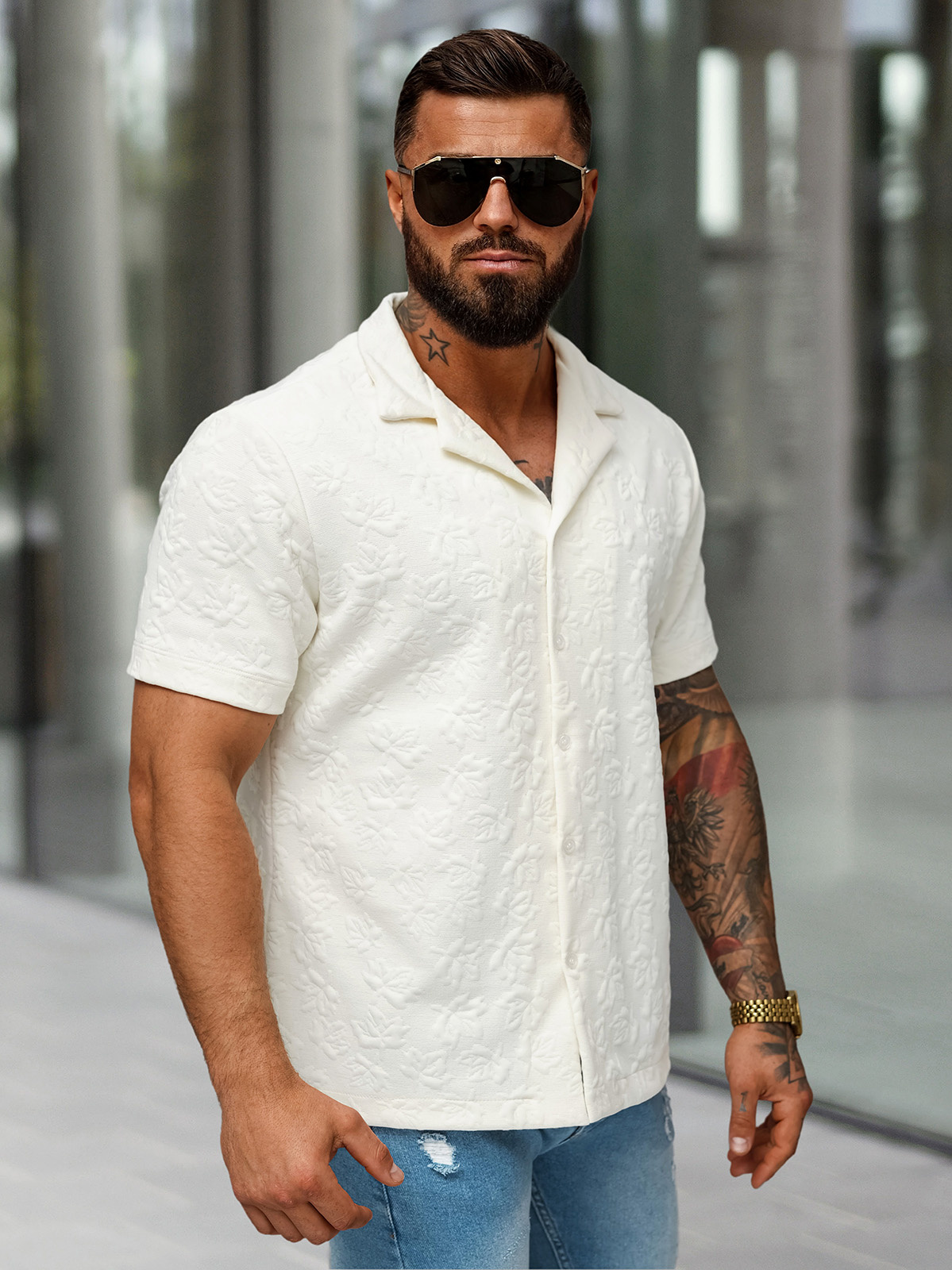 Мъжка риза с къс ръкав екрю OZONEE O/B2258