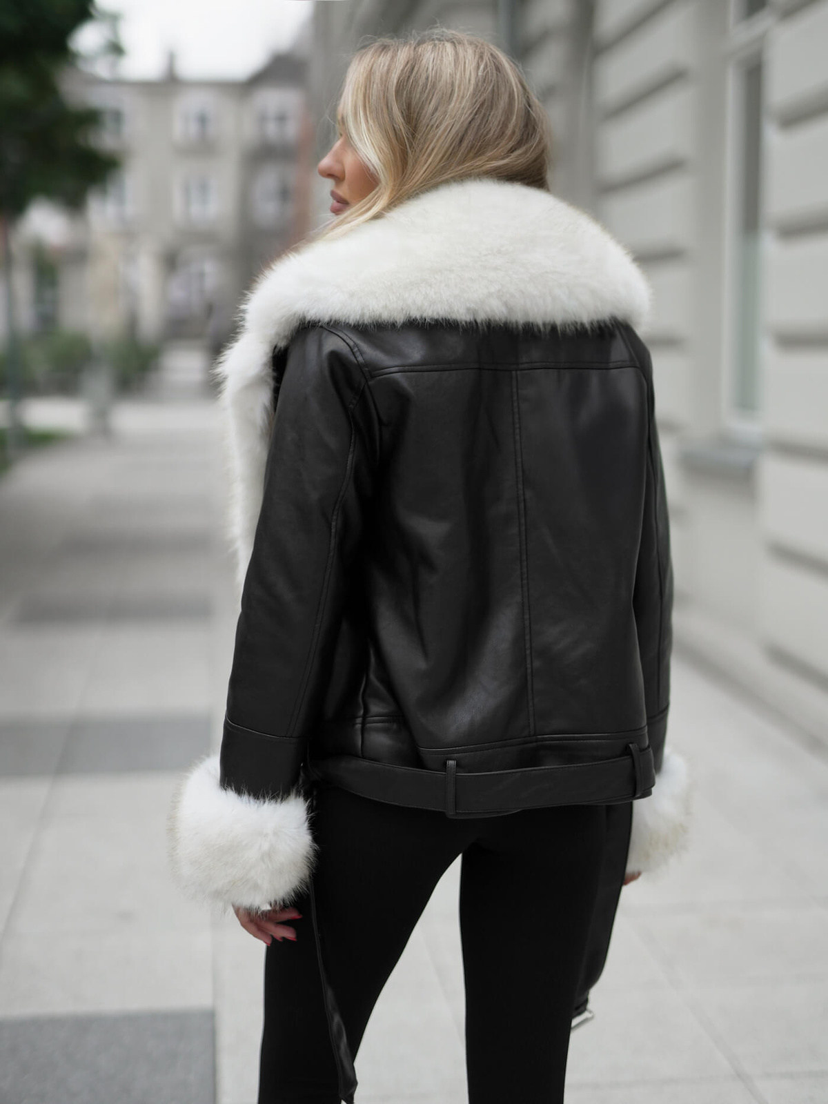 Дамско кожено яке черно-бежова OZONEE JS/61M8507/392BZ