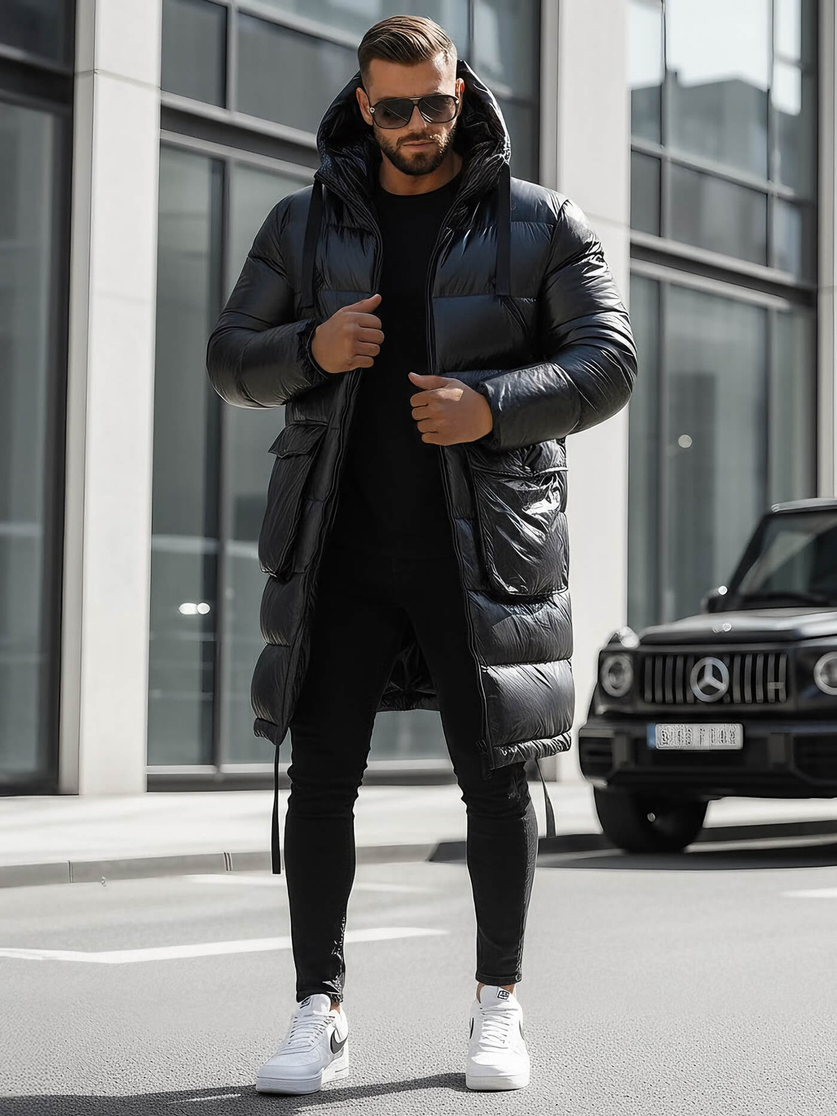 Мъжко зимно яке дълго черно OZONEE O/M3205Z