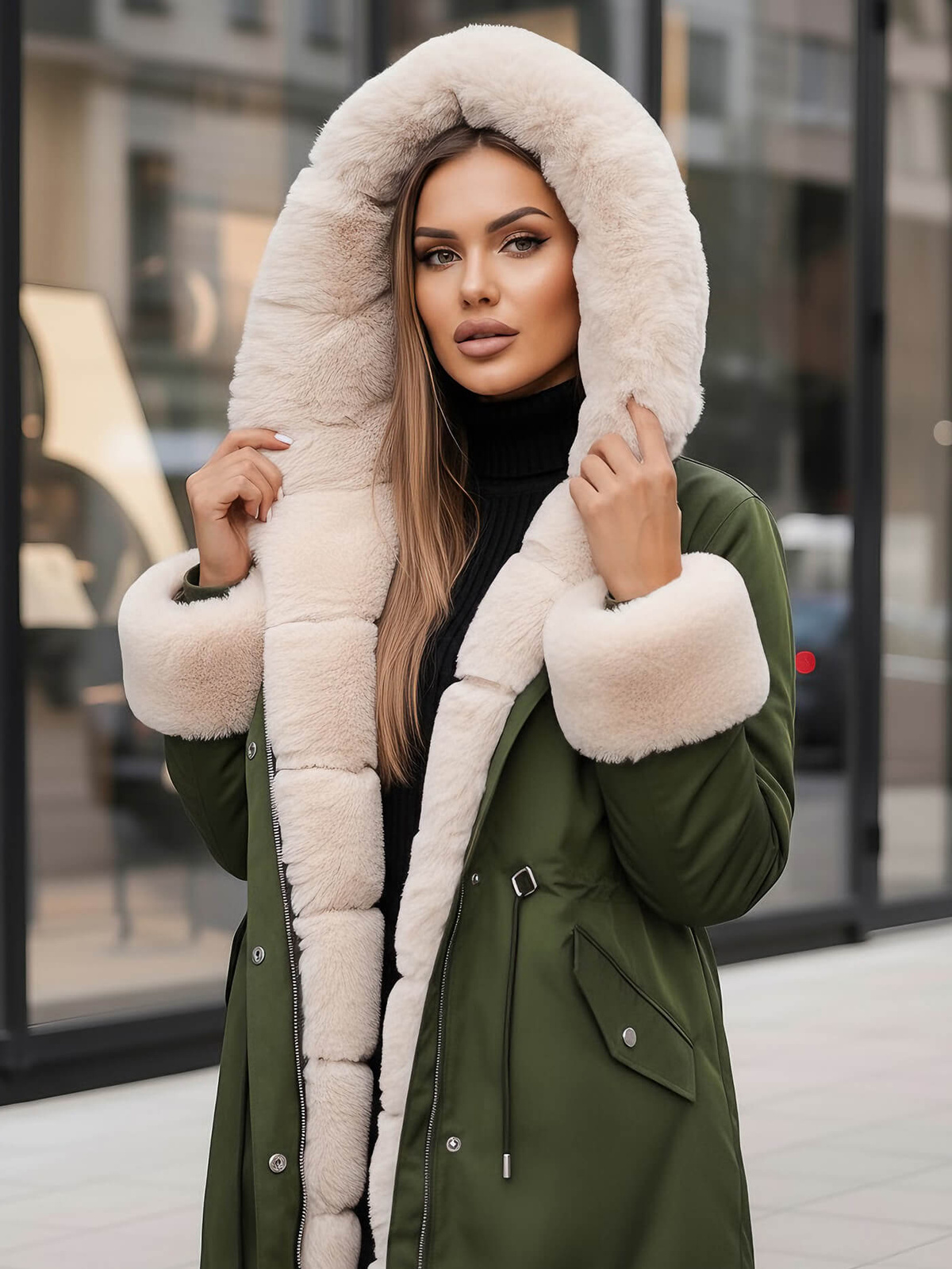Стил и удобство в едно - Зимно яке за жени с кожа в зелено OZONEE JS/M763/136Z