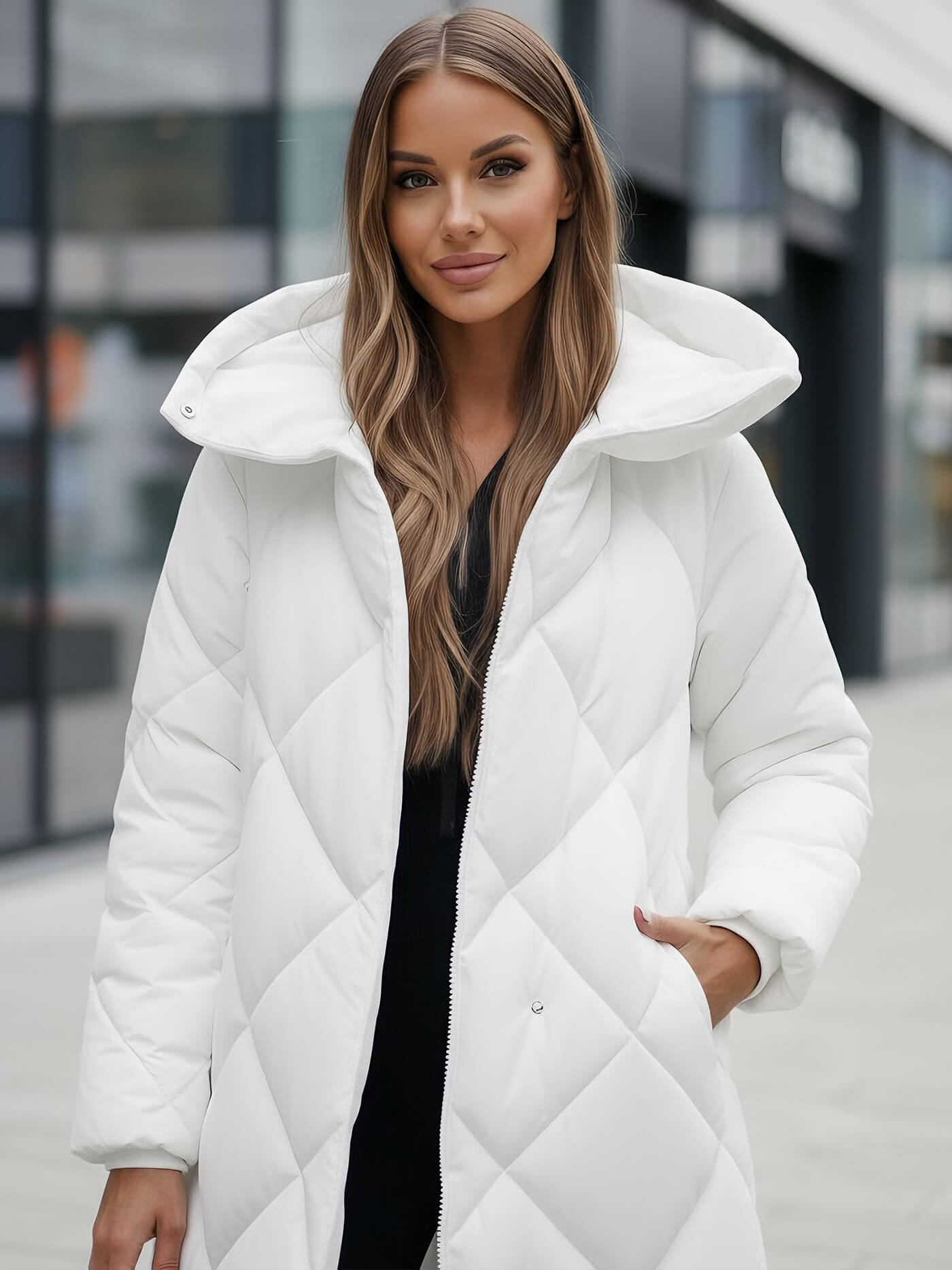 Това дамско яке от най-новата колекция е идеалният избор за зимните дни. Изработено от висококачествен материалów, то осигурява не само стилна визия, но и комфорт при носене. Якето се закопчава с цип и копчета за притискане, което позволява лесно и бързо обличане и събличане. То има и практична качулка, която предпазва от дъжд и вятър.