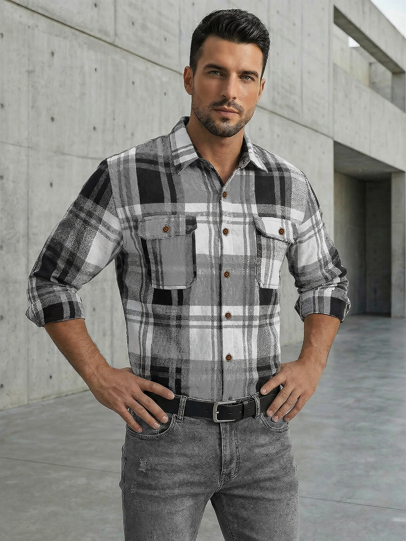 Мъжка риза черно-бяла OZONEE NB/MC728N/3Z