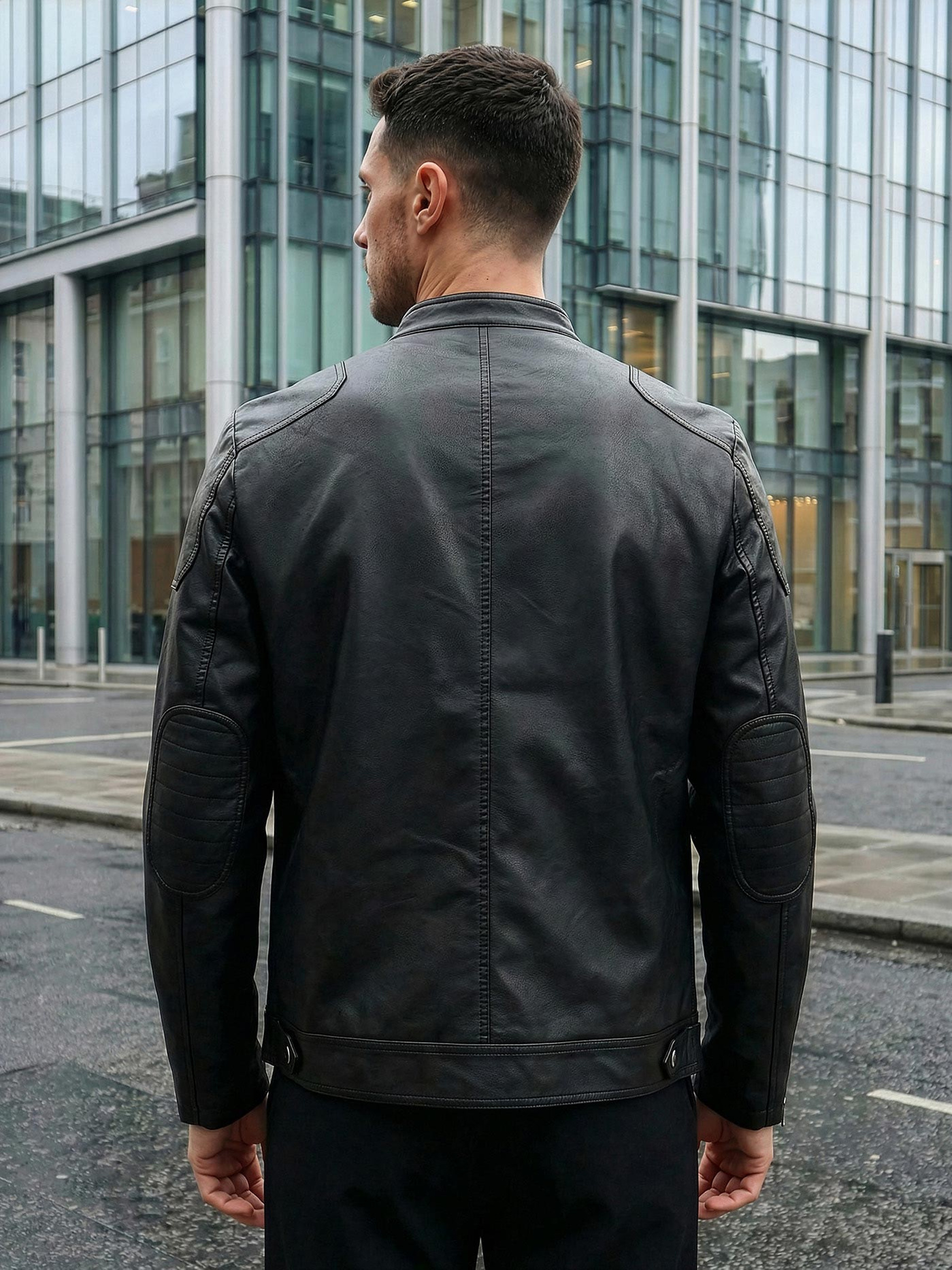 Мъжко кожено яке черно OZONEE JS/11Z8027