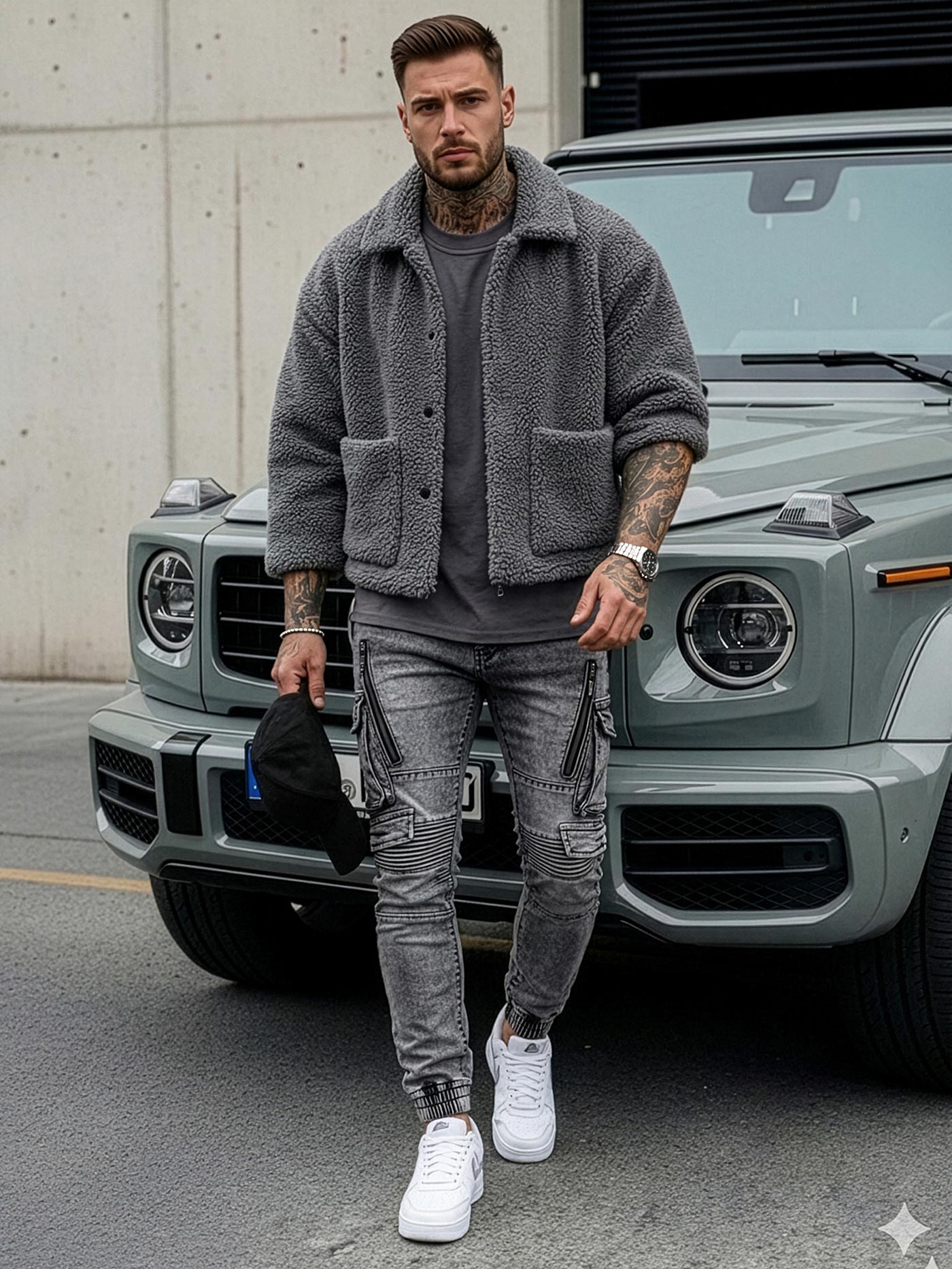 - Предни, задни и странични джобове тип карго
