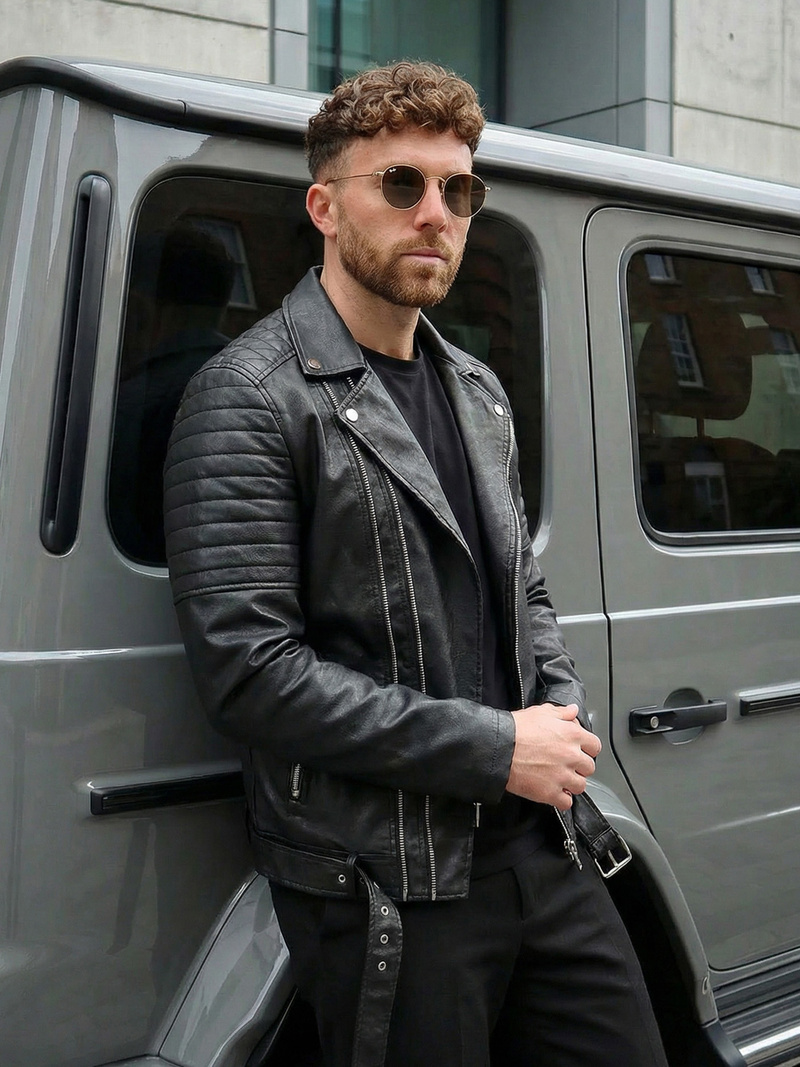 Мъжкото кожено яке ramoneska от най-новата колекция на OZONEE е идеалният избор за мъжете, които ценят стила и комфорта. Изработено от екокожа и със закопчаване с цип, това черно яке е изключително модерна и универсална дреха.