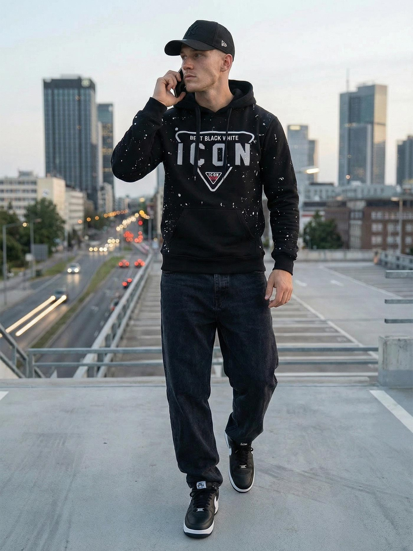 Мъжки суитшърт черно OZONEE JS/8B1737/3Z